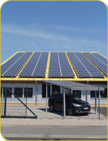 Gebäude-Daten Baujahr:2010 Fläche:1411 m² Halle:450 m² Büro:3x 125 m² Photovoltaik Volleinspeis.:28,89 kWpErtrag elekt.:28.500 kWh/aPhotovoltiak Eigennutzung:17,82 kWpErtrag elekt.:16.500 kWh/a Heizung:LuftwärmepumpeVerbrauch elekt.: 8.000 kWh/aVerbrauch allg. elekt. 8.500 kWh/a Überschuss:186.500 kWh/aRegenwasserspeicher:5.000 l Frischwasserverbrauch:35 m³ /a Brauchwasser:150 m³ /a Unser Umweltbeitrag:Bis auf drei Handwaschbecken und eine Dusche werden alle sanitären Einrichtungen mit Regenwasser versorgt. Der elektrische Überschuss entspricht dem Jahresverbrauch von zwei Einfamilienhäusern. Öl- oder Gasanschluss sind nicht vorhanden. In Planung stehen elektrische Firmenfahrzeuge. Bis zu vier solcher Elektroautos können vom Jahresüberschuss der Photovoltaikanlage versorgt werden.